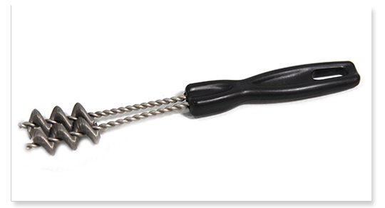 This brush is made specifically to prevent damaging your porcelain grid. The Dual Spiral Grid Cleaner is a dual-spiral metal brush that easily and effectively cleans a porcelain or stainless steel grid without scratching or chipping it. Non-abrasive and dishwasher safe!