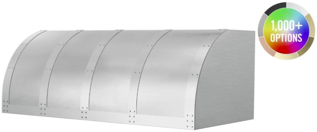 Metals & Strapping: Change your hood material from stainless steel to 14 different custom metals options including brass and copper. Plus, enhance your ventilation hood design by adding custom strapping and rivets to compliment other finishes in your kitchen.