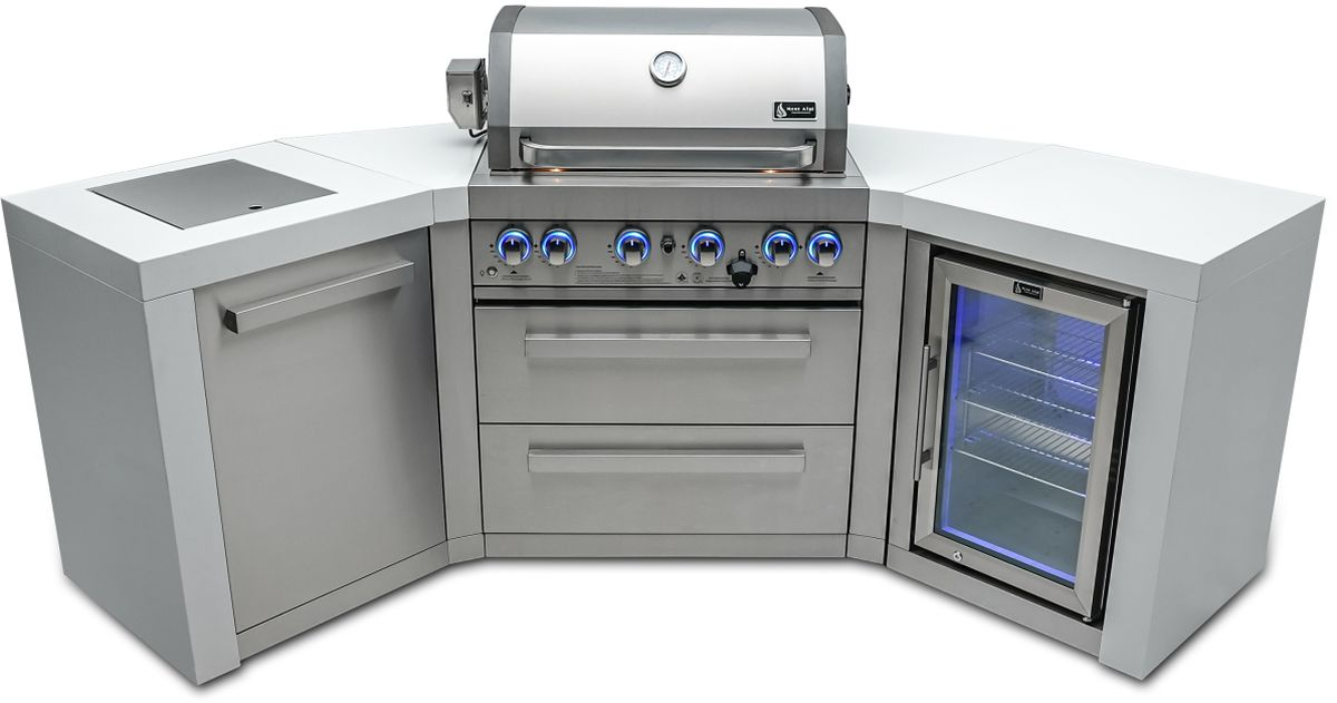 The outdoor rated refrigerator is ice cold in all conditions complete with LED light and desired temp settings. Perfect for a freezing bevvy while preparing the meal with friends and family. The 45 degree angle models add a great statement to the yard plus some extra prep space, ideal for corners