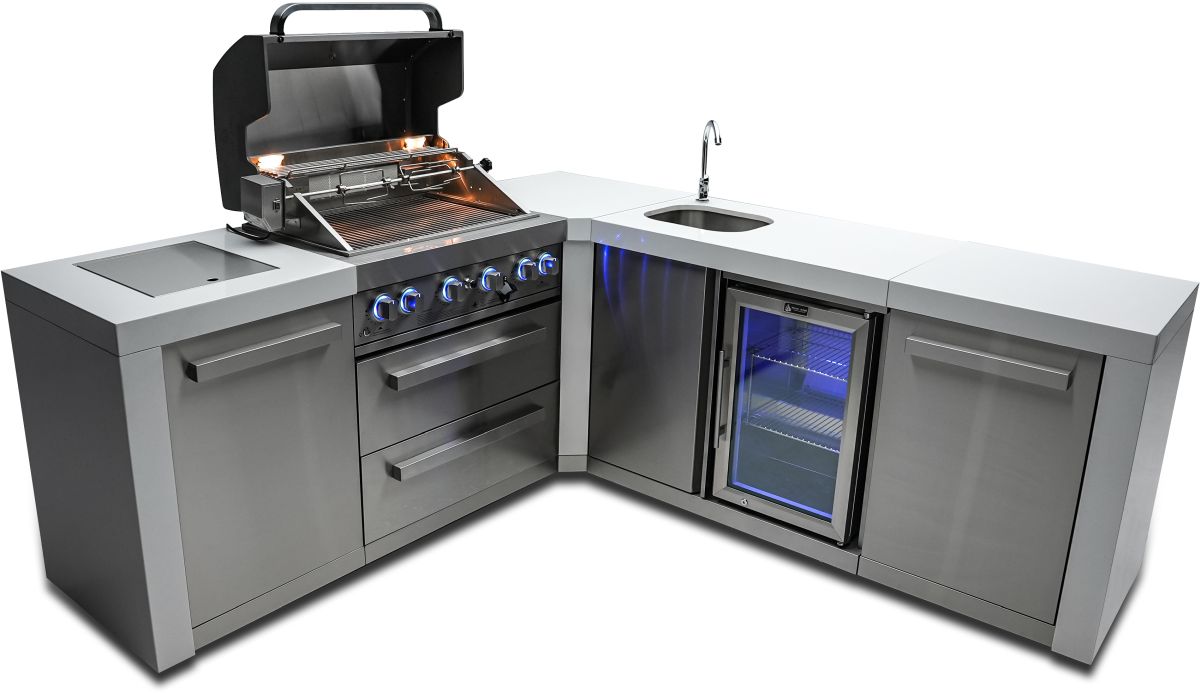 The 90 degree fridge module is the perfect fit for right angles and tighter spaces and adds a beautiful outdoor rated refrigerator, fit for any party animal.