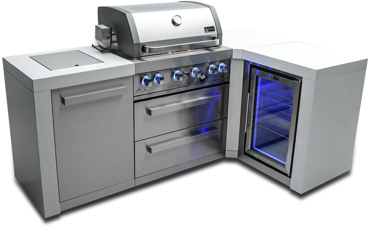 The 90 degree fridge module is the perfect fit for right angles and tighter spaces and adds a beautiful outdoor rated refrigerator, perfect for hot days, good food and ice cold beverages.
