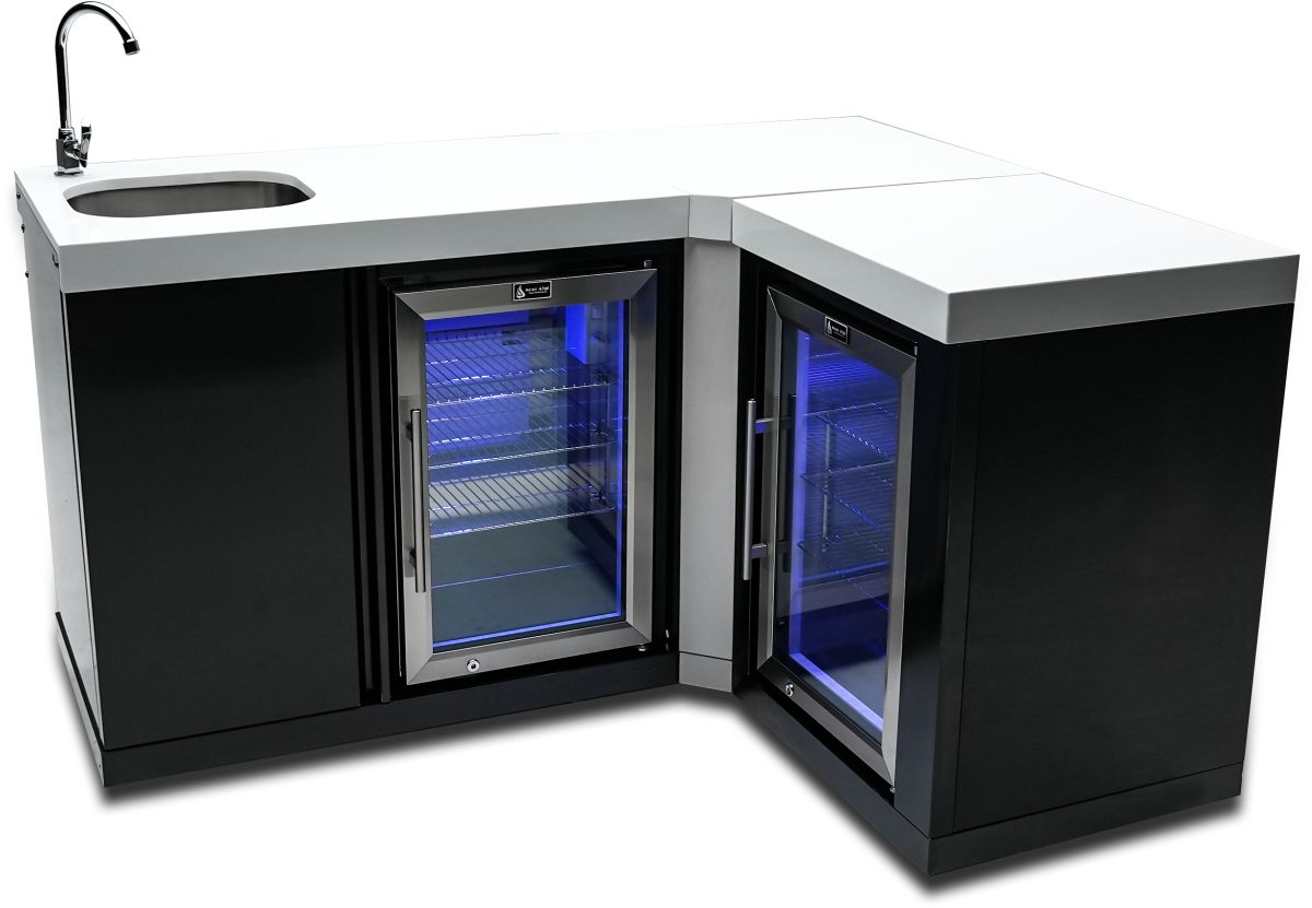The Mont Alpi® Beverage center with corner and fridge in black stainless steel, a versatile addition to any patio or yard, all of the equipment is outdoor rated. The unit has a 90 degree corner which is ideal for patios or yards with a corner.Read More